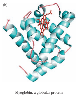 In large proteins such as myoglobin and enzymes, peptide chains are much looped, twisted and folded back on themselves due to formation of disulphide bonds. Such loops and bends give the protein a tertiary structure. Whereas in haemoglobin, protein subunits are held together to form quaternary structure.