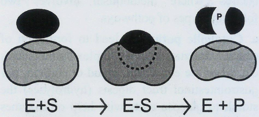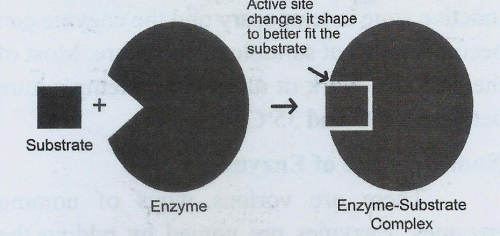 Koshland (1959) proposed the induced fit theory, which states that approach of a substrate induces a conformational change in the enzyme. It is the more accepted model to understand mode of action of enzyme. Unlike the lock-and-key model, the induced fit model showsthatenzymesarerather flexiblestructures in which the active site continually reshapes by its interactions with the substrate until the time the substrate is completely bound to it (it is also the point at which the final form and shape of the enzyme is determined).